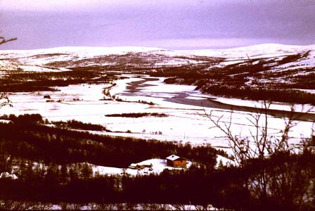 Sirbmá is a small village way up streams in the valley of Deatnu (Tana). We are 200 people here, and most of us are sami Speaking Samis. In this image we see the most downstream (yes we orientate ourselves downstream and upstream)part of Sirbma The river makes a swing by the small Village Jeagelveadji. On this side there is Norwegian sovereignty, and on the other there is Finnish. The yellow house in the bottom of the image is our home.